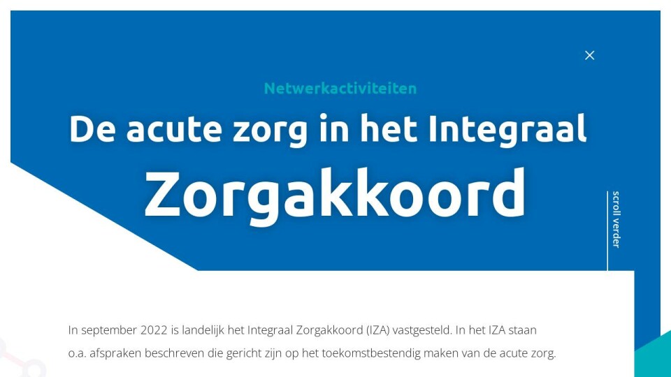 In september 2022 is landelijk het Integraal Zorgakkoord (IZA) vastgesteld. In het IZA staan o.a. afspraken beschreven die gericht zijn op het toekomstbestendig maken van de acute zorg.